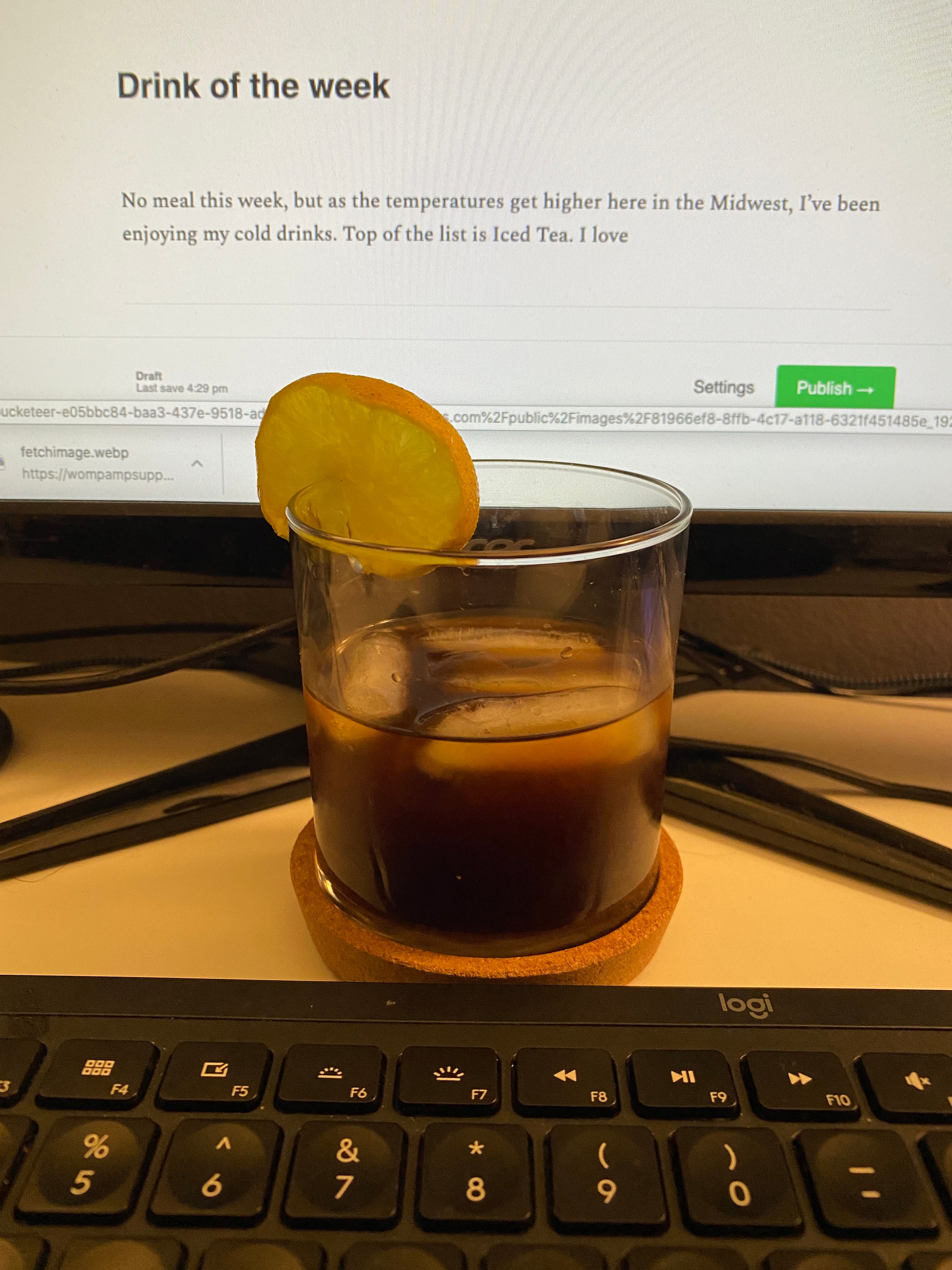No meal this week, but as the temperatures get higher here in the Midwest, Iâve been enjoying my cold drinks. Top of the list right now is this AmazonBasics Iced Tea with some maple syrup as a sweetener and a slice of lemon. Healthier for you than coffee, itâs a complete no-brainer.