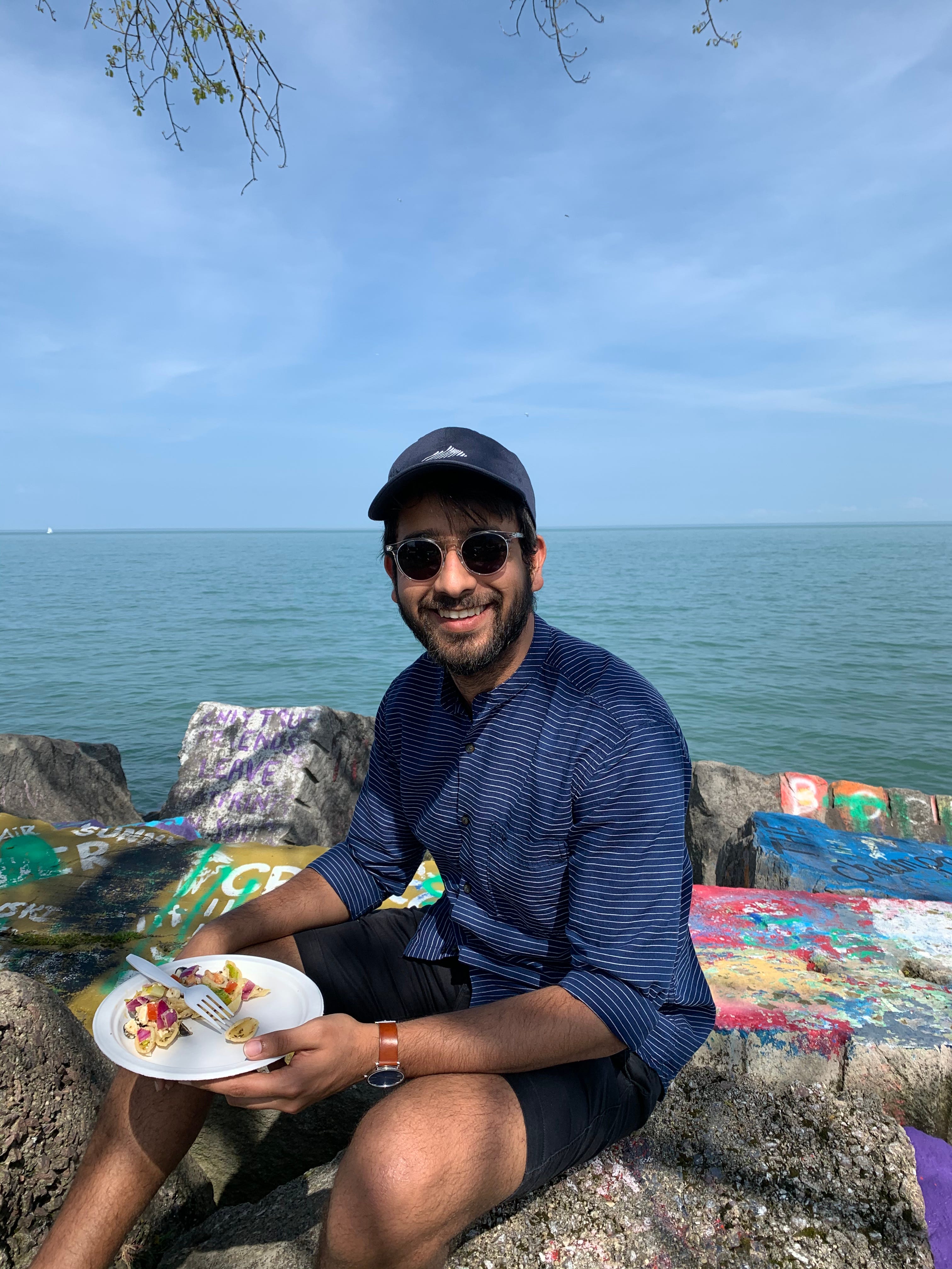 My roommateâs lovely parents brought over food and on as balmy a day as today, it would have been a crime to not eat it on the lake. Easily the meal of the week.