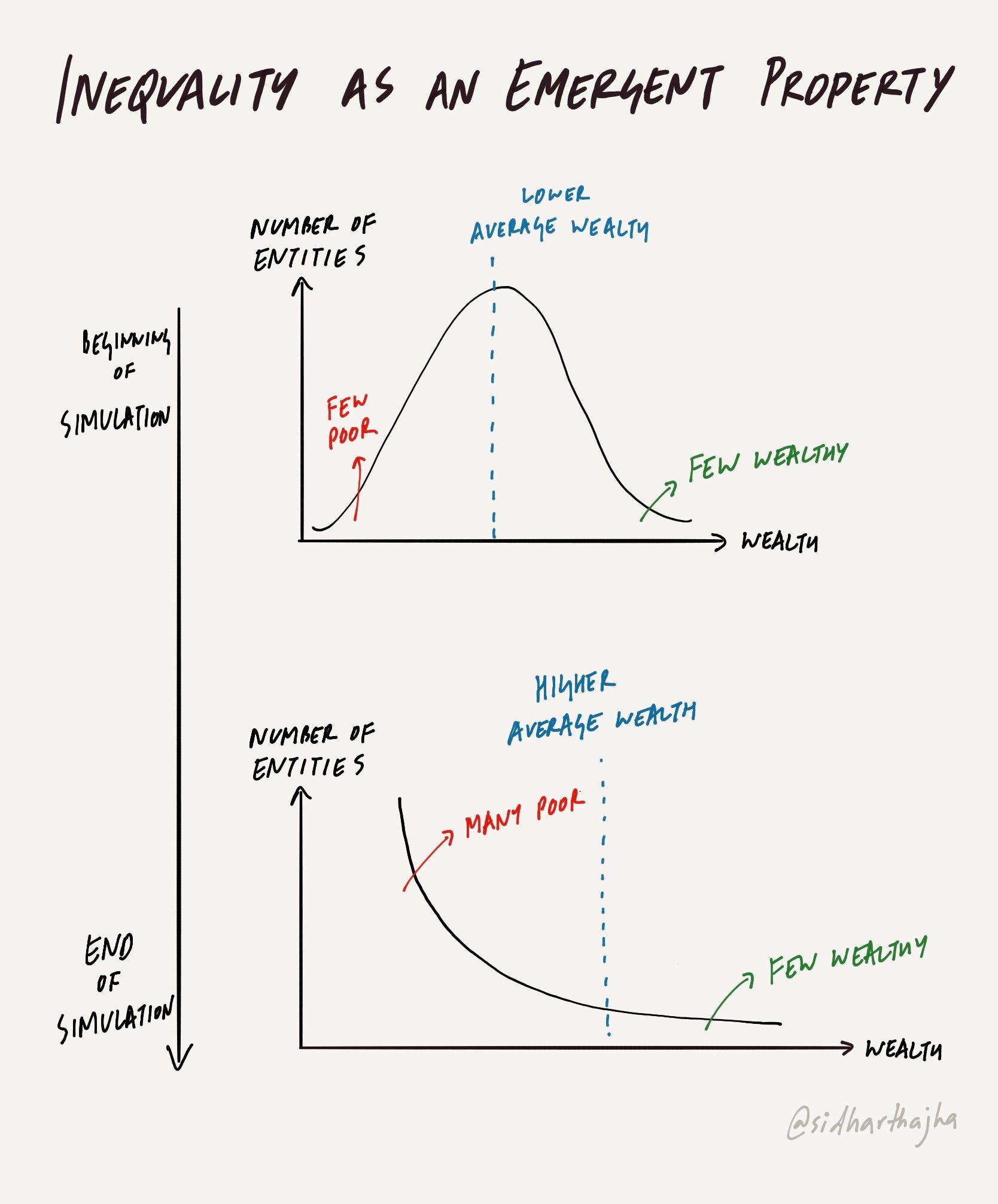 Various permutations of the game showed that this inequality was not due to any particular factor that could be fine-tuned to remove or reduce it, but simply an emergent property of the system. This has massive policy and political implications that I’ll talk about next week.