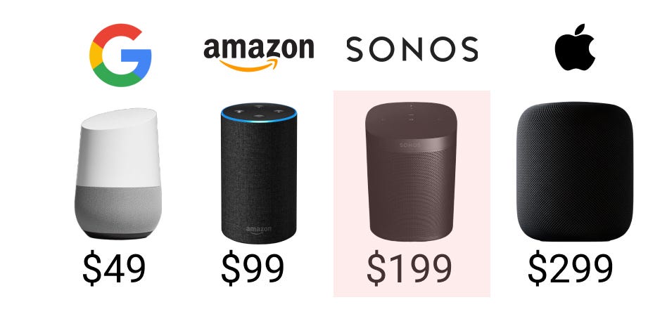 Sure, it has better sound quality. But this is difficult for the average ear to pick up on. Amazon/Google have significantly more resources to deploy in terms of marketing and R&D for the voice assistants. These two players have open-sourced their assistants, so you can use both on a Sonos Speaker. But Sonos doesn’t make any money or get any accumulating competitive advantage from the services provided by these voice assistants. The only differentiated hardware company that’s done well is Apple. But Apple had its own ecosystems to lean on and and since it operates from a position of ecosystem lock-in, Sonos speakers don’t even have access to Siri.